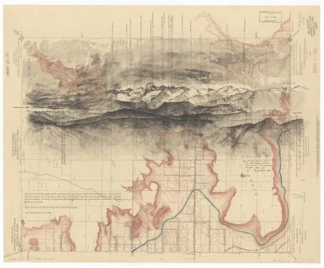 Avec ces oeuvres qui mélangent les perspectives, des cartes et des éléments du paysage, Matthew Rangel documente ses randonnées dans les montagnes de la Sierra Nevada.