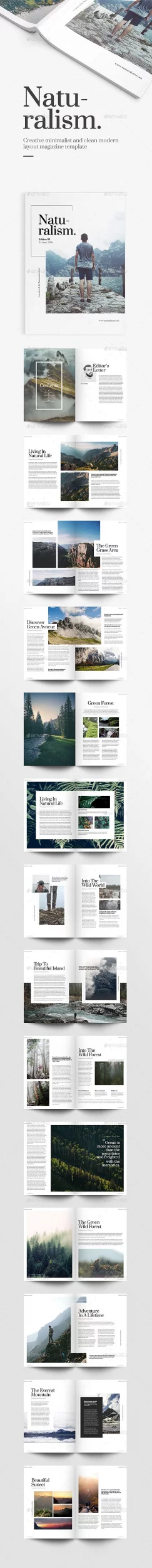 Naturalism is creative minimalist and clean modern layout magazine template, good for designer working on travel, vacation, or adventure magazine, it’s ...