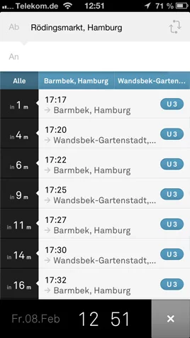 nextr ist die einfachste und eleganteste Art Deutschlands öffentliche Verkehrsmittel zu überblicken. Egal ob S-Bahn, U-Bahn, Bus oder Fähre, nextr kennt alle Haltestellen und Abfahrtszeiten in deiner direkten Umgebung und in ganz Deutschland. Haltestellen und Verbindungen werden übersichtlich direkt auf der Karte visualisiert und gewährleisten so stets den optimalen Überblick. Zudem wird die Suche nach Haltestellen und Adressen durch Autosuggest enorm vereinfacht.
